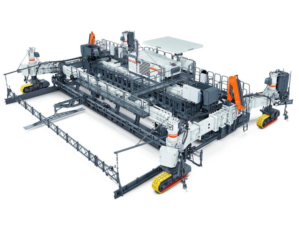 Offset pavers are used to produce monolithic concrete profiles such as protective concrete walls, kerb profiles, gutters or narrow paths. Thanks to numerous options, such as for concrete feeding or slipforming, offset slipform pavers are extremely versatile. Inset pavers cost-effectively produce concrete pavements, such as for motorways, arterial roads, runways or railway lines. In addition to single-layer concrete paving, bottom-layer and top-layer concrete can also be paved synchronously in two layers ‘wet on wet’.